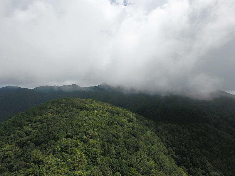 山頂からの展望では、南には太平洋熊野灘、北には紀伊山地の山並みと帯のように延びる熊野川が見渡せます。