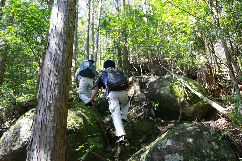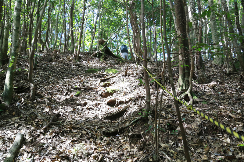 山頂付近ではロープを使い、登る場所が数箇所あります。