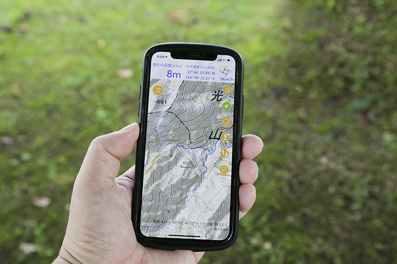 スマホはカメラや時計の機能があるだけでなく、事前にGPSアプリを入れておくと、地図と現在地が表示されとても便利です。しかし、精度が十分でない場合や電波やGPSが入らないこともあります。また、電池切れにも注意が必要です。
